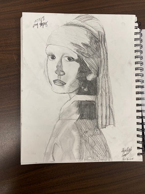 For my art classes, I’ve been teaching through the book Drawing on the Right Side of the Brain by Betty Edwards. The lessons have been going incredibly well for both the students and me. I truly believe that anyone can learn to draw if they want to, and my students have been perceptive and hardworking, making it a joy to teach them.
