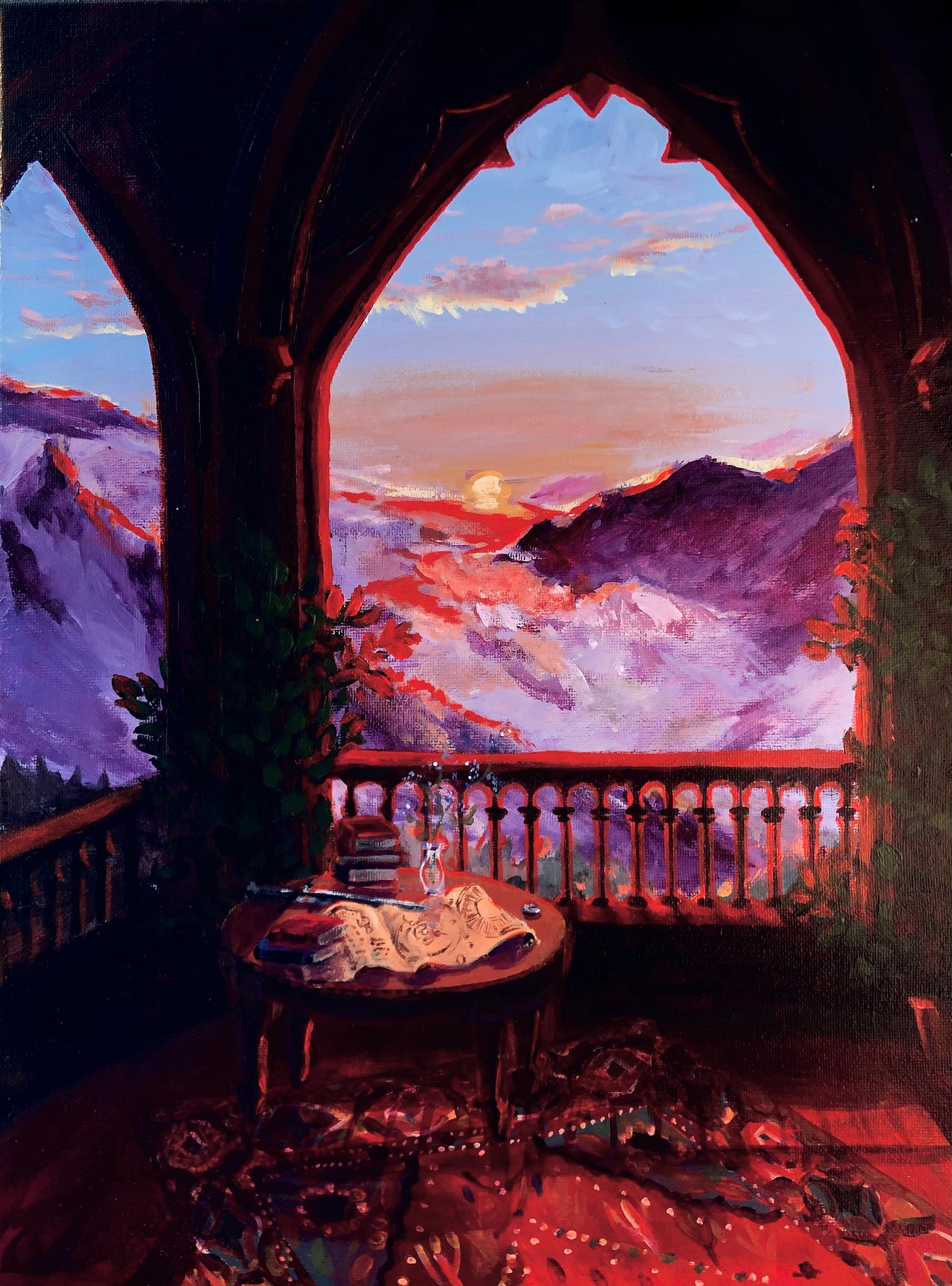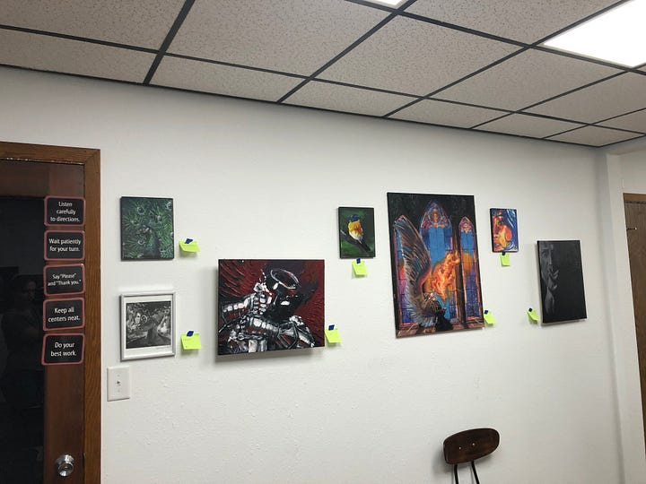The next couple of months were calmer. I started working part-time at an art studio, teaching classes on Saturdays. During this time, I focused on creating art, studying theology, and keeping up with my church jobs—cleaning and secretarial work. I also painted my favourite art piece to date, a piece inspired by Colorado and the movie The Prestige!