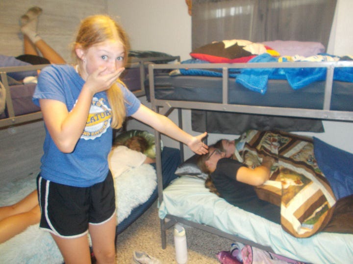While losing my job at Country Ford was challenging, June was filled with camps. I spent two weeks counseling at Bonhomme Bible Camp, as I do every year. For the junior camp, we arrived to find that there was no director. The person I thought would direct wasn’t able to attend, and the camp speaker—who might have helped—was new and in her first year. I volunteered to take on the director position for the week. With the help of some older staff members, I set up the schedule, organized the kids, and managed activities, all while counseling a cabin of third graders.