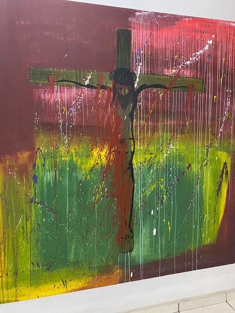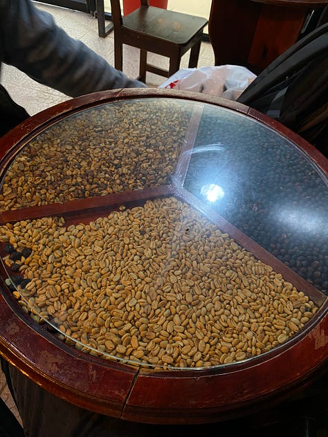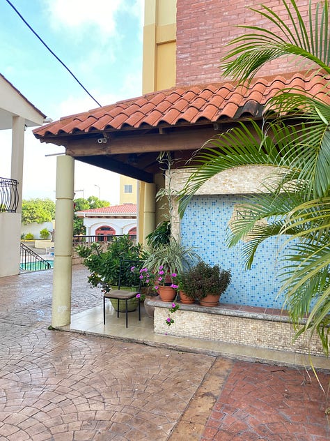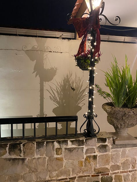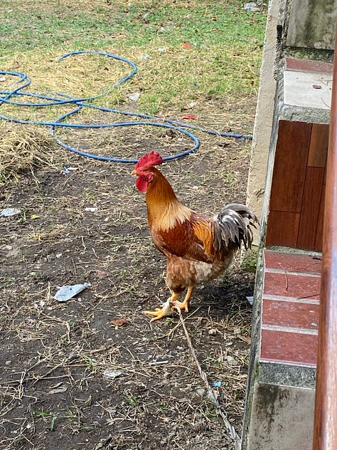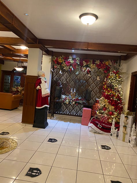 I’ve also been taking pictures of some of the different art I’ve seen and of the hotel that we stayed at, which already had its Christmas decor. One cafe had a “coffee table” and I also included our neighbor’s rooster.