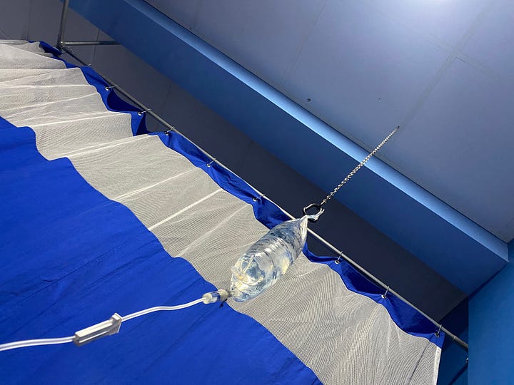 After the first round of IV fluids and a few other medications, so they could check to make sure that the infection hadn’t spread, which thankfully, it had not, they started me on IV antibiotics and gave me a painkiller for the two-hour drive back. Also side note, they hang their IVs from carabiners in this particular hospital (see above).