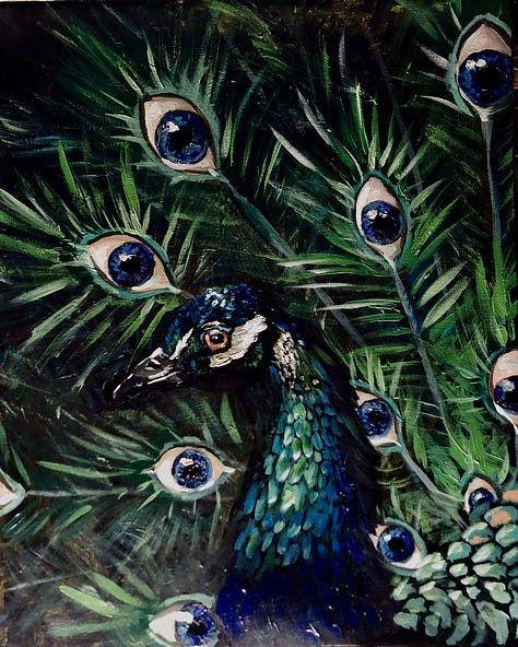 This week I did some paintings! I’m still working on the peacock, but the other two were for one of my friends who moved away this weekend.